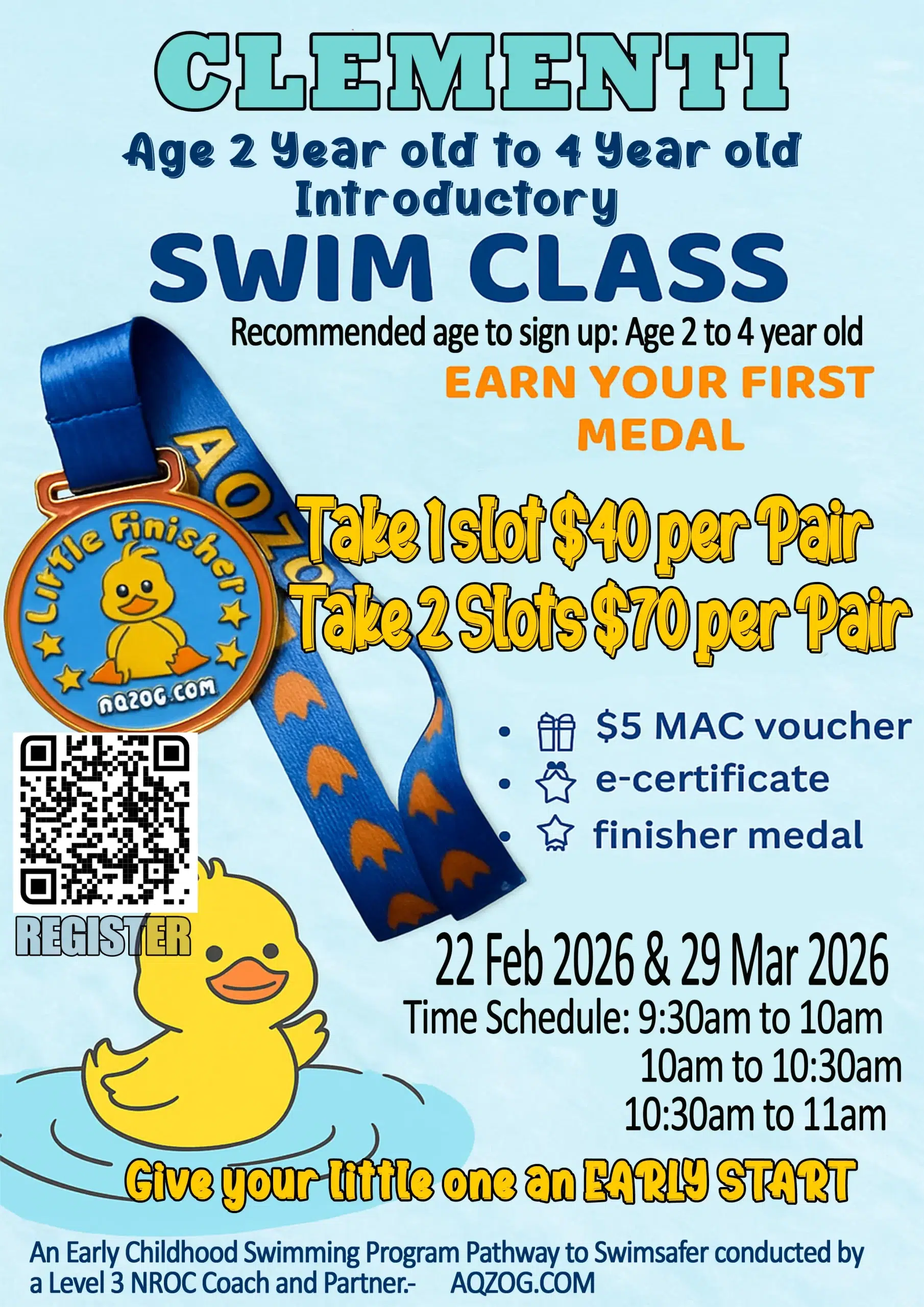 AQZOG Offers Swim Lessons at convenient ActiveSG Locations